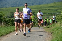 Ce dimanche les féminines étaient une nouvelle fois à l'honneur à Rosheim avec sur le 5 et le 10 km des vagues dédiées. Car on est galant dans la cité médiévale et pour une fois ce sont les premières féminines qui franchissent en tête la ligne d'arrivée sous l'ovation du public venu en nombre grâce à une météo estivale. Aussi l'occasion, trop rare, pour que la presse débute les résultats par les féminines et non les masculins... Sur le 10km vallonnée d'un vignoble arrivé presque à maturité, Emmanuelle Ziegler, déjà victorieuse la semaine passée sur les 24km du Trail HK, s'impose en 41'06'' devant la triathlète Céline Feder. La canadienne Sonia Bureau complète le podium. Chez le masculin, victoire du Junior Arthur Deloignon devant Steve Muller et Julien Siat.