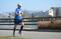 Pistard, spécialiste du 1500m, Mounir Acherki, habitué aux distances plus courtes, avait envi ce dimanche matin de gouter à un parcours un plus long : 20 bornes sur route, un aller-retour entre Huningue et Rosenau le long de la réserve de la petite camargue alsacienne. La concurrence était là : Yemine Beghoul, Grégory Schmitt, Fabien Brunner, Guillaume Collombet, le vainqueur de l'an passé, mais qui cette année participe au relais 2x 10km, une nouveauté proposée par l'organisation. Après une première petite boucle dans Huningue, un premier groupe se forme, composé de Mounir Acherki, en tête, Yemine Beghoul et Guillaume Collombet (relais), suivi de Grégory Schmitt et Fabien Brunner. C'est à ce moment que Mounir produit son effort et s'échappe, 25sec d'avance sur Yemine à mi-parcours après Village-Neuf, 35 sec à la sortie de Rosenau, le coureur du Collectif Athlé Colmar terminera avec plus de 2 minutes (1h06'22'') d'avance sur son dauphin, Yemine Beghoul, terminant pieds nus sur le bitume ! Ce dernier contraint à l'abondant l'an passé, ne voulait pas connaitre la même mésaventure deux fois de suite et préférera retirer ses chaussures ensanglantées pour finir la course en 1h08'36'', soit près de 2 minutes de mieux que le vainqueur de l'an passé. Derrière Grégory Schmitt 3ème sur le tracé retour, sera repris par Fabien Brunner sur le dernier kilomètre. Chez les féminines comme l'an passé Sophie-Emmanuelle Schoenig s'impose en 1h24'50'', devant Christina Muller et Marie-Christine Schatz. Près de 350 concurrents auront bouclé ses 20 bornes sous un franc soleil, comme le montre les photos ci-après.