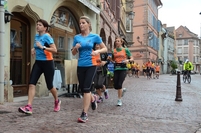 se sont donnés rendez-vous place Rapp pour découvrir le parcours du Semi-Marathon qui empruntera les premiers kilomètres du marathon du coté de Wettolsheim et