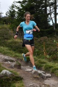 J'ai trouvé l'organisation bien rôdée. Tout était clair et fluide et nous avons été bien informés en amont du déroulé et des précautions. Les départs par vague se sont bien passés et ont permis d'étaler le peloton même si pour le coup j'ai trouvé que cela faisait une course bizarre car les filles par exemple étaient éparpillées dans différentes vagues. Au final on court vraiment pour soi car on ne sait pas on se situe les autres. J'ai donc couru en me disant qu'il ne fallait pas trop traîner car derrière on ne savait pas comment cela aller se passer d'autant qu'il y avait un bon plateau de coureuses... J'appréhendais un peu la longueur et la durée ; ainsi que de partir trop vite vu que le parcours est, au début du moins, propice à s'emballer. J'ai pris beaucoup de plaisir sur les sentiers, dans les forêts et bien sûr sur les crêtes. Les locaux m'avaient prévenue du terrain technique par endroit et c'est vrai qu'on se fait vite surprendre et qu'il faut rester vigilant. Sarah m'a rapidement remontée et j'ai vu à sa foulée et son rythme qu'elle était vraiment bien. Il aurait d'ailleurs était suicidaire de vouloir la suivre ! Entre les marcheurs et les suiveurs il y avait pas mal de monde pour encourager donc c’était agréable. Je souligne aussi le fair-play de la gente masculine (ce qui n'est pas toujours le cas) lors de la course. |